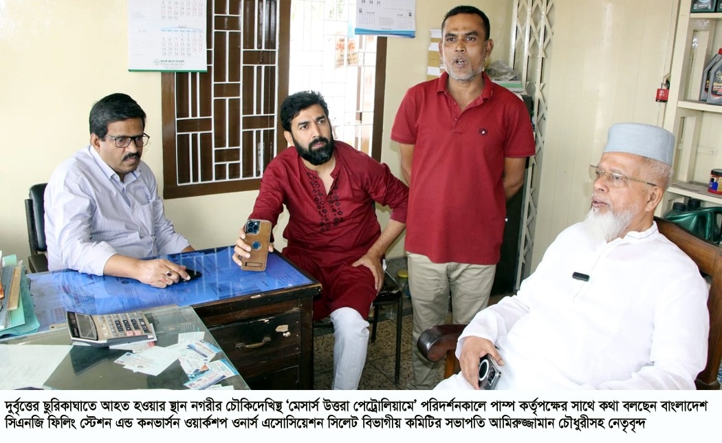 পরিদর্শনকালে উপস্থিত ছিলেন, এসোসিয়েশনের সভাপতি আমিরুজ্জামান চৌধুরী, ভারপ্রাপ্ত সাধারণ সম্পাদক সুব্রত ধর বাপ্পি ও সাংগঠনিক সম্পাদক আলী আফছার ফাহিম প্রমুখ। নেতৃবৃন্দ আক্রান্ত পাম্পের ক্যাশিয়ার রঞ্জন কান্তি চৌধুরীর সাথে কথা বলেন ও ঘটনার বিস্তারিত শুনেন।পরিদর্শন শেষে নেতৃবৃন্দ বলেন, জ্বালানি সংকটের এই সময়ে পাম্পের কর্মীরা দিনরাত সেবা দিয়ে যাচ্ছেন। নিয়মতান্ত্রিকভাবে জ্বালানি সংগ্রহের অনুরোধ করা কি অপরাধ? তুচ্ছ ঘটনায় একজন কর্মীকে এভাবে মারধর ও রক্তাক্ত করা কোনোভাবেই মেনে নেওয়া যায় না।তারা আরও বলেন, পাম্পগুলোতে পর্যাপ্ত নিরাপত্তা নিশ্চিত করতে হবে। যদি মঙ্গলবারের আল্টিমেটামের মধ্যে হামলাকারীদের গ্রেপ্তার করা না হয়, তবে বৃহত্তর আন্দোলন কর্মসূচি ঘোষণা করা হবে। আমরা প্রশাসনের কাছে অবিলম্বে দোষীদের দৃষ্টান্তমূলক শাস্তির দাবি জানাচ্ছি।
