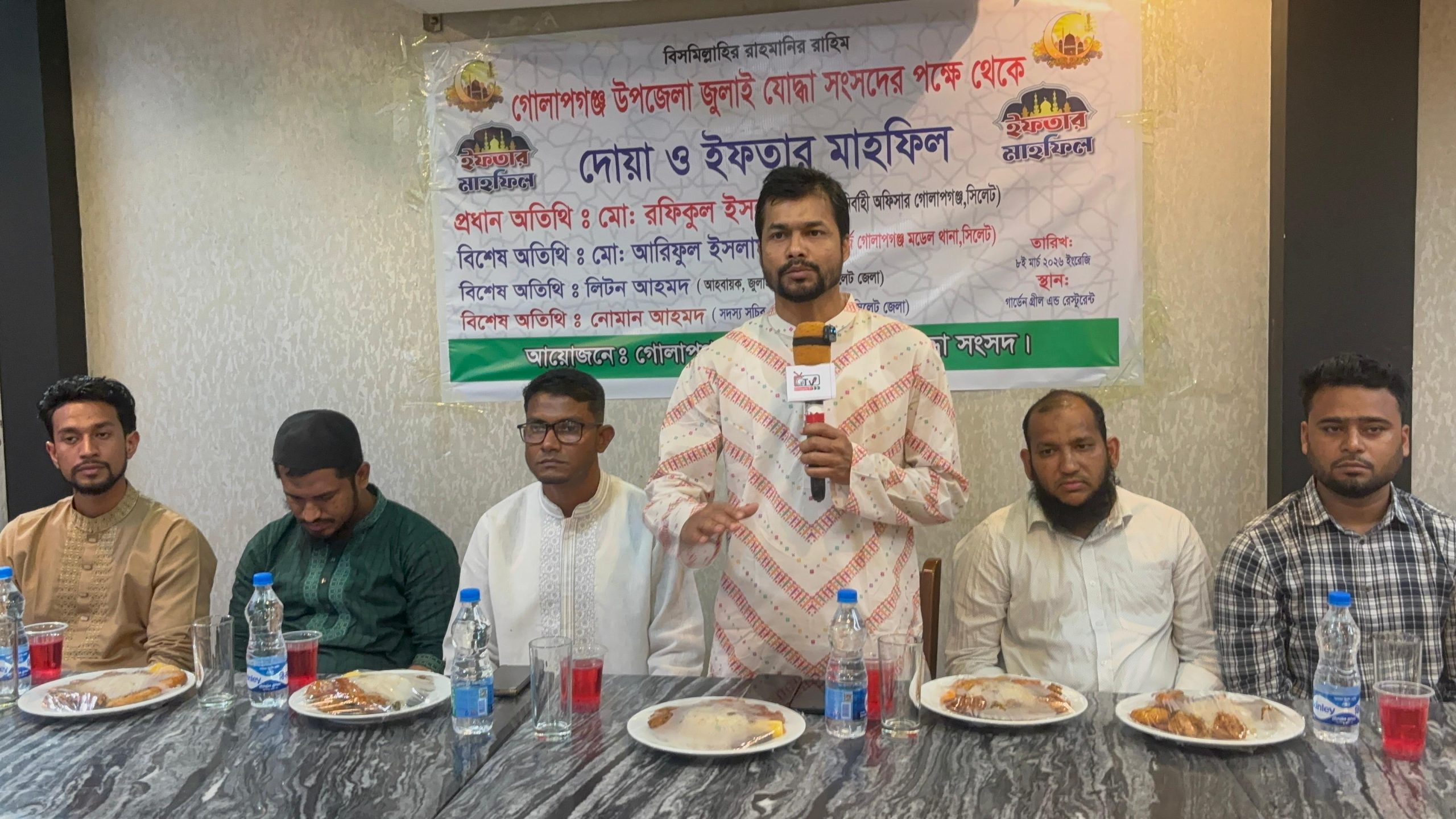 তিনি রোববার (৮ মার্চ) গোলাপগঞ্জ উপজেলা জুলাই যোদ্ধা সংসদের উদ্যোগে অনুষ্ঠিত ইফতার ও দোয়া মাহফিলে প্রধান অতিথির বক্তব্যে উপরোক্ত কথা বলেন। উপজেলা সদরের একটি রেষ্টুরেন্টে অনুষ্ঠিত মাহফিলে জুলাই শহীদদের রুহের মাগফেরাত ও আহতদের সুস্থতা কামনা এবং দেশ-জাতির মঙ্গল কামনায় বিশেষ মোনাজাত পালন করা হয়।