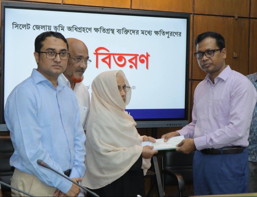 এখন সিলেট ডেক্স :: সিলেট জেলায় বাস্তবায়নাধীন গুরুত্বপূর্ণ চারটি উন্নয়ন প্রকল্পের আওতায় অধিগ্রহণকৃত ভূমির মালিকদের মধ্যে প্রায় ১১ কোটি ৪০ লাখ টাকার ক্ষতিপূরণের চেক বিতরণ করা হয়েছে।